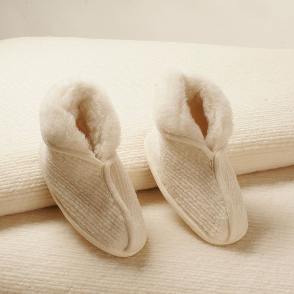 Ocieplacze stóp SPECJAL wyglądają jak wygodne, miękkie bambosze. Mają wysoki kołnierz estetycznie wywinięty na zewnątrz w okolicach kostki. To idealny produkt dla osób, które lubią mieć stopy oraz kostki dokładnie otulone w delikatne, miłe futerko. Dzięki naturalnym zaletom wełny stopy są ogrzewane i jednocześnie nie pocą się. Podobnie jak w przypadku zwykłych ocieplaczy stóp, ocieplacze stóp SPECJAL zostały zaprojektowane z myślą o wspomaganiu leczenia dolegliwości reumatycznych. Ocieplacze stóp można prać w warunkach domowych, tak jak inne produkty wełniane, najlepiej w płynie z lanoliną. Zalecamy użycie Płynu z lanoliną Lama Gold.
